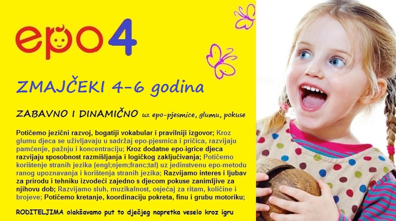 • epo 4 ZMAJČEKI je namijenjen četvero- i petogodišnjacima, ali i trogodišnjacima koji su pohađali epo3. Cilj programa jest da potaknemo djecu na:
